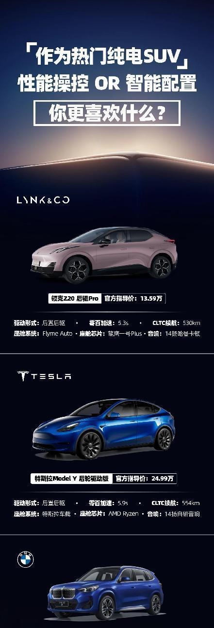 相比同级别的电动SUV,领克Z20不仅配置丰富、性能卓越,还在外观和智能科技上走在前沿,完全符合年轻消费者对于“高质感、高性能、合理价格”的所有期望。对于那些追求个性、独立和自由的年轻人来说,领克Z20是一款能够自我满足、带来无限乐趣的车型。如果你也正在寻找一款能与自己个性和生活方式相契合的车,领克Z20无疑值得考虑。
